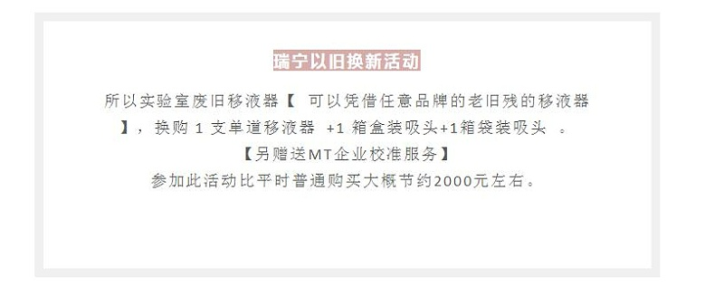 廢舊的移液器不要扔!瑞寧可以舊換新