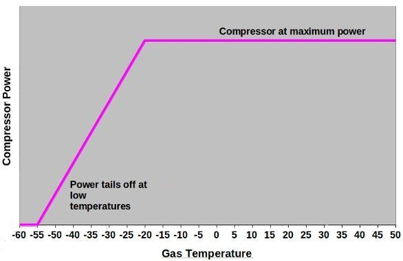 圖 3 – 壓縮機(jī)功率與氣體溫度。